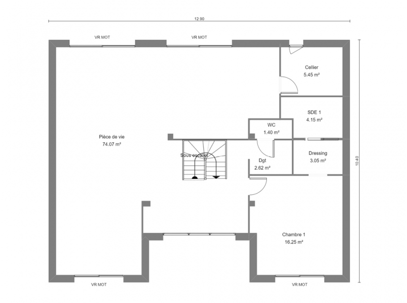 Plan de maison neuve et procédé constructif conformes à la RE 2020.