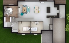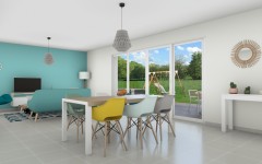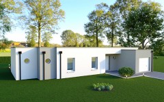 Des lignes sobres, une belle association d’enduits 2 teintes (n’oubliez pas que c’est vous qui les choisissez), cette maison contemporaine de plain-pied renouvelle ses classiques sans en avoir l’air. En y regardant de plus près, vous noterez les multiples jeux d’avancée et de retrait qui rythment les façades. Avez-vous remarqué les 3 hublots qui percent sa façade ? Cette maison neuve de plain-pied abrite 3 chambres dont 1 en suite parentale et un vaste salon/séjour de presque 40 m² qui s’ouvre largement sur le jardin grâce à 2 grandes baies vitrées coulissantes. La cuisine, 15 m² décloisonnés, s’inscrit dans le prolongement de la pièce vie.