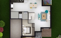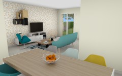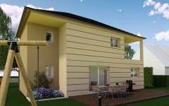 Ce modèle de maison très contemporaine à toit multi-pentes, au-delà de son niveau énergie positive, propose des prestations haut de gamme : 134 m² habitables dont 4 chambres, celle du rez-du-chaussée comprend une salle d’eau privative équipée d’une douche, les plans incluent déjà les zones de cloisonnement pour vos placards intégrés. À l’étage, l’une des chambres est constituée en suite parentale de plus de 20 m² et un bel espace mezzanine permet d’envisager un bureau d’appoint, un coin bibliothèque ou un espace multimédia. À noter : les allèges vitrées sous les fenêtres de l’étage qui assurent fonction de garde-corps sans rien retirer à la vue sur l’extérieur. Les couleurs de l’enduit béton sont, bien-entendu, laissées à votre libre choix et le marquage au fer de l’enduit viendra souligner la modernité de cette maison.