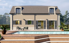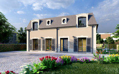 Cette maison neuve à étage fait partie des plus vastes de notre gamme : 166 m² habitables et pas un mètre carré qui ne soit pleinement utilisable. Vous noterez sa charpente Mansart caractérisée par une toiture à quatre versants, formés chacun de 2 pentes différentes. Cette architecture de style classique apparue au XVIIe siècle n’a pas pris une ride. Deux ouvertures en oeil de boeuf et quatre lucarnes meunières (dites aussi pendantes ou feunières, en raison de leur inscription dans le prolongement vertical de la façade sous la gouttière de la toiture) témoignent du soin de la conception architecturale de cette maison. Les parements d’angles des façades s’inscrivent dans la même cohérence de style. Que vous ayez de nombreux amis ou beaucoup d’enfants, le plan de cette maison neuve inclus 5 belles chambres et un vaste espace de vie de plus de 58 m². Une suite parentale de 20 m² prend place en rez-de-chaussée, on accède à sa salle de bain en traversant le dressing. Une mezzanine de 17 m² surplombe le séjour et dessert les 4 chambres de l’étage. Très ouverte sur les espaces verts, la conception de la maison permet 5 accès direct à l’extérieur via 4 portes fenêtres qui s’ajoutent à la porte d’entrée. Comme tous les plans de nos maisons, vous pouvez choisir de la construire telle quelle, de l’adapter à vos besoins ou de vous en inspirer librement. Les conseillers Maisons Lelièvre savent ajuster très rapidement les plans à vos demandes, n’hésitez pas à la solliciter.