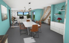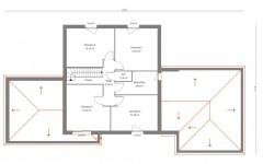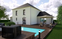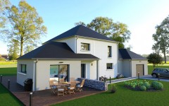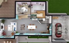 Conçue sur un principe d’imbrication de 3 modules architecturaux, cette maison neuve affirme son originalité autant que toute attention que nous portons au confort de vie de ses habitants. Modernes et spacieux, les plans de cette maison individuelle s’articulent autour d’un module central, dont l’étage, à plancher béton, abrite quatre chambres. La pièce de vie totalise près de 67 m², ce bel espace rectangulaire se prête à tous les aménagements et la lumière naturelle y est omniprésente grâce à deux grandes baies coulissantes ouvertes de part et d’autre du jardin. Judicieusement isolée des espaces communs, la suite parentale située en rez-de-chaussée dispose d’un accès privatif au jardin, via une belle baie vitrée coulissante. Le grand garage de cette maison, livré en chape lisse et équipé d’une fenêtre, permet d’envisager facilement l’installation d’un atelier. Vous pouvez bien-sûr personnaliser librement ce plan pour l’ajuster à vos modes de vies.