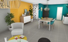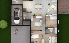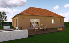 La toiture à quatre pans donne à cette maison neuve une allure résolument moderne. Son porche s’insère parfaitement dans la structure en L de son architecture. La pièce de vie, prolongée d’un espace cuisine en retrait, jouit d’une double exposition à la lumière via deux vastes portes-fenêtres coulissantes. Comme tous nos plans de maison en L, l’espace est conçu pour préserver la tranquillité de chacun en séparant de manière pertinente les espaces nuit des espaces jours, sans pour autant perdre la moindre place. Ce modèle de maison individuelle se décline, selon le même principe d’aménagement, en différentes surfaces, de 90 à 117 m², 3 ou 4 chambres et même avec suite parentale incluant une salle-de-bain privative et dressing.