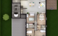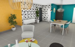 La toiture à quatre pans donne à cette maison neuve une allure résolument moderne. Son porche s’insère parfaitement dans la structure en L de son architecture. La pièce de vie, prolongée d’un espace cuisine en retrait, jouit d’une double exposition à la lumière via deux vastes portes-fenêtres coulissantes. Comme tous nos plans de maison en L, l’espace est conçu pour préserver la tranquillité de chacun en séparant de manière pertinente les espaces nuit des espaces jours, sans pour autant perdre la moindre place. Ce modèle de maison individuelle se décline, selon le même principe d’aménagement, en différentes surfaces, de 90 à 117 m², 3 ou 4 chambres et même avec suite parentale incluant une salle-de-bain privative et dressing.