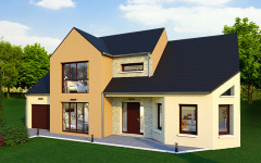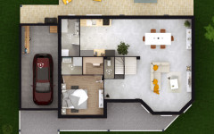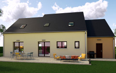 L’extérieur de cette maison joue les imbrications de volumes avec une certaine audace. Son architecture dynamique peut être soulignée par un revêtement en pierres de parements dans l’entrée. La pièce de vie, près de 55 m² en forme de L, s’achève avec élégance sur un bow-window, l’espace sous plafond qui le surplombe s’ouvre jusqu’au toit de la maison. Les 4 chambres sont vastes et deux d’entre elles bénéficient d’un bel éclairage naturel puisqu’elles sont équipées de grandes baies vitrées. Le pallier de l’étage peut être aménagé en bureau. Le garage accolé, livré en chape lisse bien-sûr, inclut 18 m² combles aménageables à l’étage.