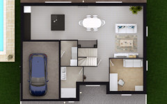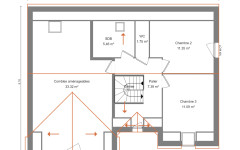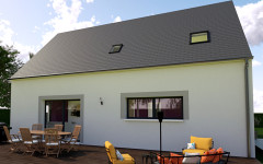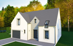 Compact et adapté à un tissu urbain dense, ce modèle de maison neuve présente une façade originale dans laquelle s’imbriquent deux pignons qui jouent l’avancé et le retrait. À L’étage, l’une des chambres est équipée d’une fenêtre en verrière d’angle qui apporte un cachet particulier à la façade et offre une vue dégagée sur l’extérieur. Cette maison de type traditionnelle est disponible en plusieurs configurations, la version 3 chambres laisse encore 33 m² de combles aménageables, accessibles et déjà équipées de fenêtres, pour faire évoluer facilement votre maison en temps voulu. Vous pouvez également choisir d’emblée d’aménager tout ou partie des combles. Zéro mètre carré perdu : les plans de cette maison ont été étudiés avec le plus grand soin pour que vous puissiez habiter chaque mètre carré, ainsi le cellier est équipé d’une porte coulissante escamotable dans la cloison et les WC du rez-de-chaussée sont installés sous l’escalier.