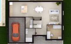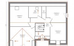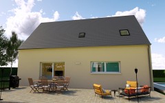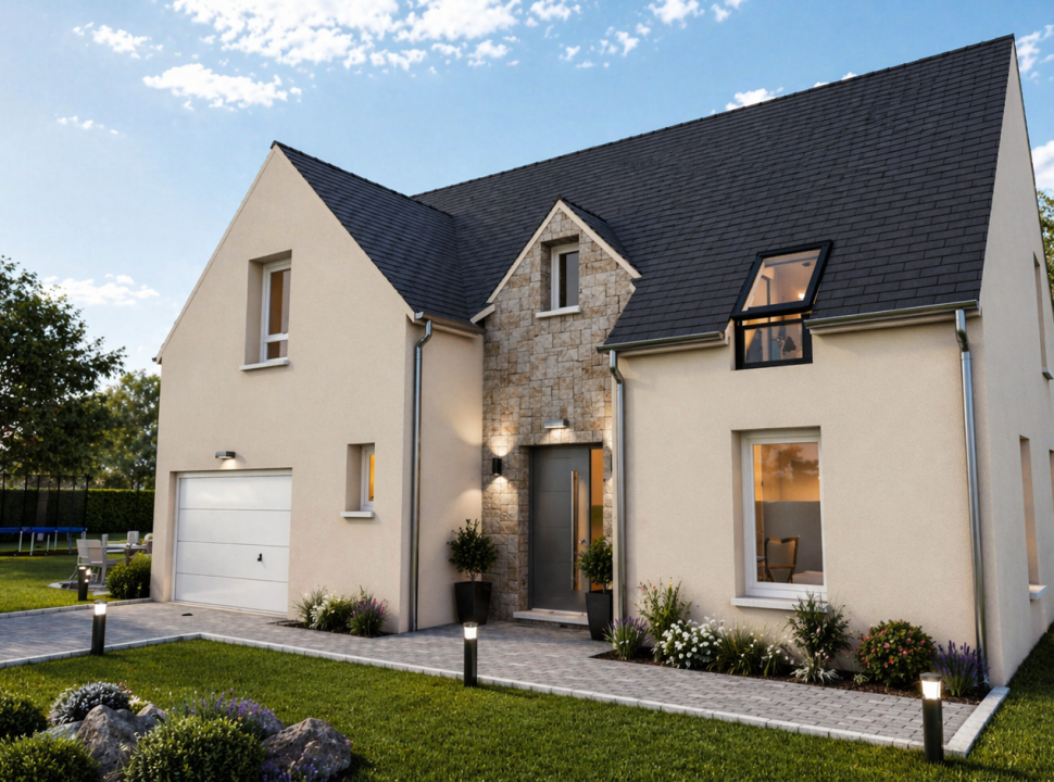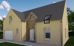 Compact et adapté à un tissu urbain dense, ce modèle de maison neuve présente une façade originale dans laquelle s’imbriquent deux pignons qui jouent l’avancé et le retrait. À L’étage, l’une des chambres est équipée d’une fenêtre en verrière d’angle qui apporte un cachet particulier à la façade et offre une vue dégagée sur l’extérieur. Cette maison de type traditionnelle est disponible en plusieurs configurations, la version 3 chambres laisse encore 33 m² de combles aménageables, accessibles et déjà équipées de fenêtres, pour faire évoluer facilement votre maison en temps voulu. Vous pouvez également choisir d’emblée d’aménager tout ou partie des combles. Zéro mètre carré perdu : les plans de cette maison ont été étudiés avec le plus grand soin pour que vous puissiez habiter chaque mètre carré, ainsi le cellier est équipé d’une porte coulissante escamotable dans la cloison et les WC du rez-de-chaussée sont installés sous l’escalier.