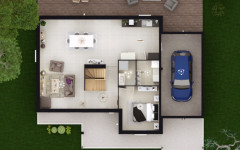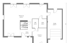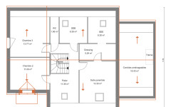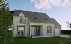 Caractérisé par son porche très dessiné, en retrait de la façade principale, et un balcon qui participe avec justesse à l’équilibre de l’architecture, ce plan de maison fait la part belle à la pièce de vie en rez-de-chaussée. L’escalier qui mène aux combles aménagés, et abrite dans le même temps les WC, est orienté de manière à éviter toute contrainte dans l’installation votre mobilier. Dans sa version 4 chambres, la maison Veronica dispose d’une très belle chambre constituée en suite à l’étage : près de 25 m² incluant dressing et salle de bain privative, de quoi imaginer un espace quasi indépendant pour des enfants qui poursuivent leurs études au domicile familial. La chambre du rez-de-chaussée, qui dispose également de sa propre salle-de-bain, est aisément convertissable en bureau. Plus de 15 m² de combles aménageables surplombent le garage et vous permettent d’agrandir, à plus ou moins brève échéance, vos espaces de vie.