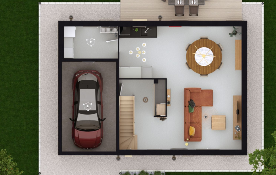 A MAULE sur un terrain de 502 m², LES MAISONS LELIÈVRE vous propose de réaliser cette maison neuve d'une surface de 98 m² habitables avec 3 chambres.