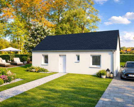 A FRESNAY-L'EVEQUE sur un terrain de 535 m², LES MAISONS LELIÈVRE vous propose de réaliser cette maison neuve d'une surface de 80 m² habitables avec 2 chambres et garage accolé